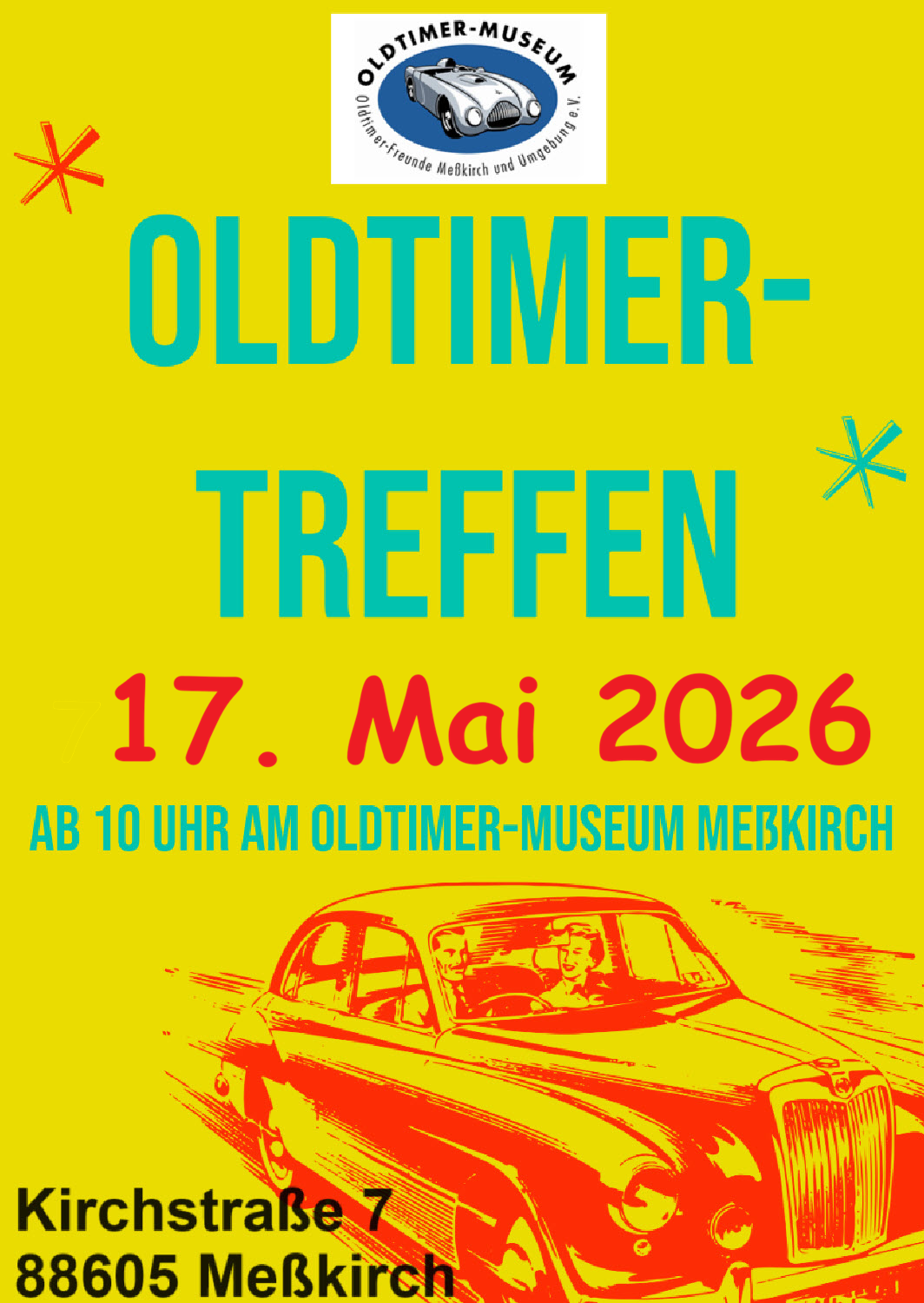 | 11.6.2026 | Aufbau Klassikwelt Bodensee Wie in jedem Jahr sind wir mit einem Messestand auf der Klassikwelt Bodensee vertreten. Aufbau ist bereits am Donnerstag. |